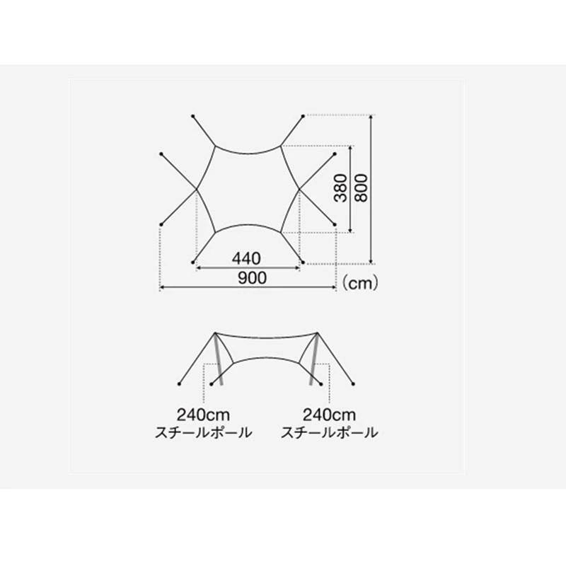 タープ本体、スチールポール(240cm×2)、スチールペグ(30cm×8)、