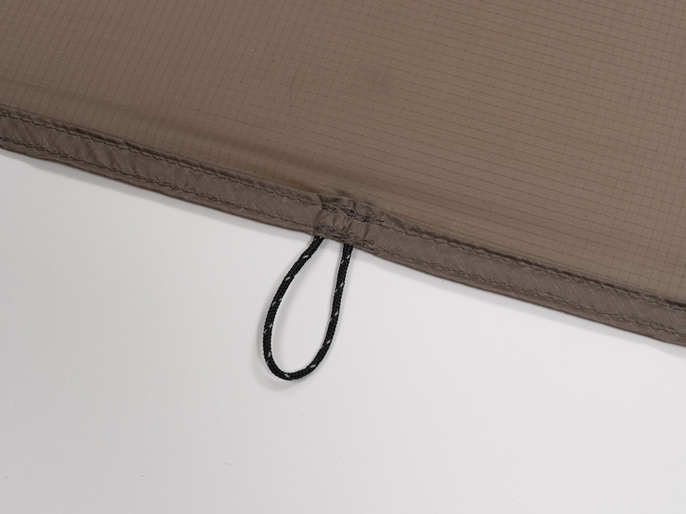 四隅のペグダウンループにはロープを採用し、軽量化と収納性を実現しています