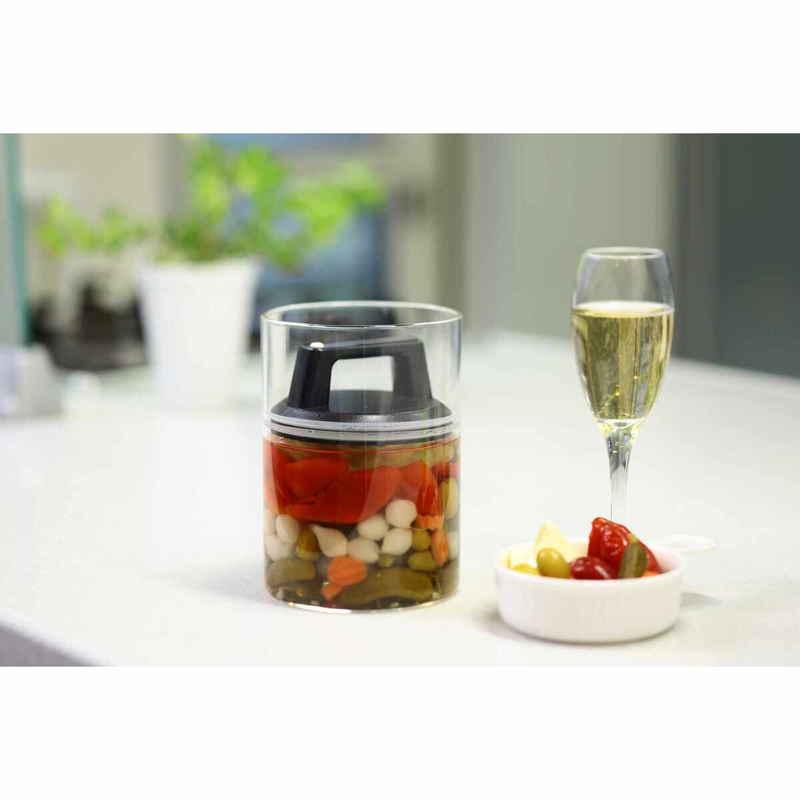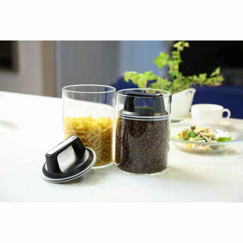 余分な空気を減らして酸化を防止し、湿気を嫌う茶葉やパスタ、コーヒー豆が傷みにくいガラス容器です。