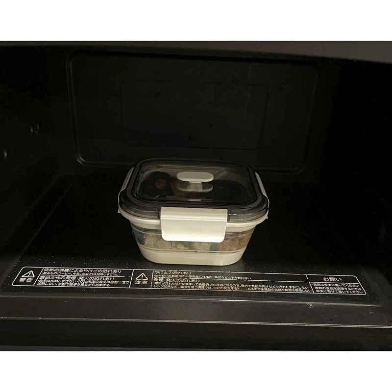 フタの空気弁を上げると、フタをしたまま電子レンジ加熱が可能です。