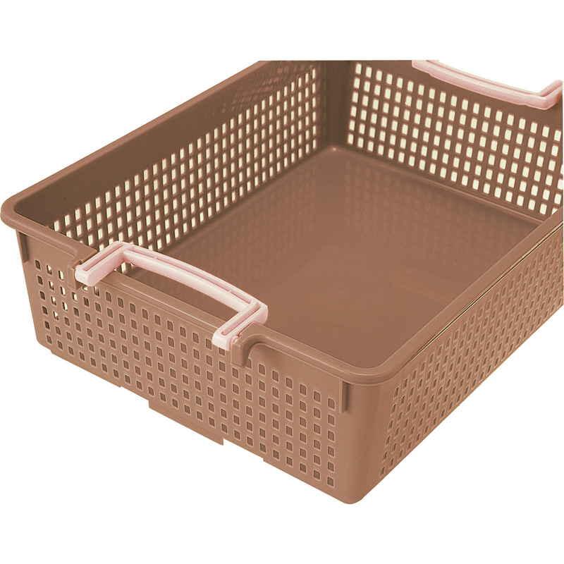 取っ手を内側に倒して積み重ねられるフリーバスケット、Lサイズです。