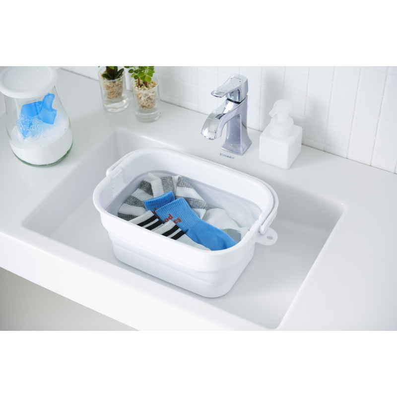 伊勢藤 【めざましテレビで紹介】バケツ 折りたためる つけ置き洗いバケツ 7L 洗濯板 蓋つき 角型 ホワイト