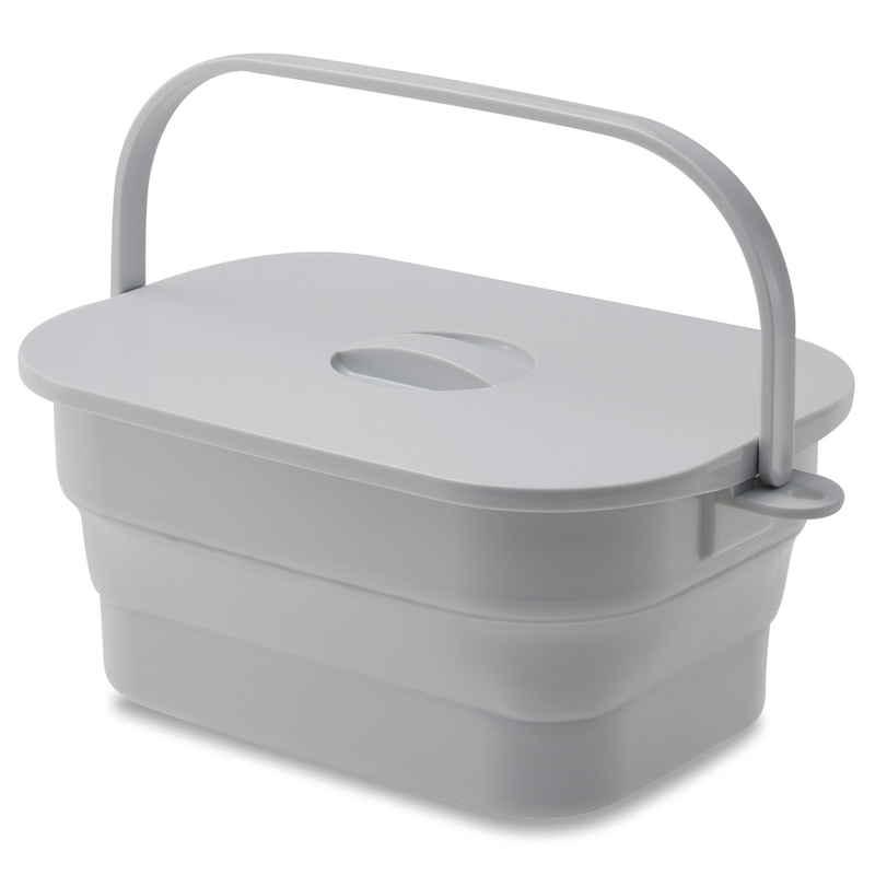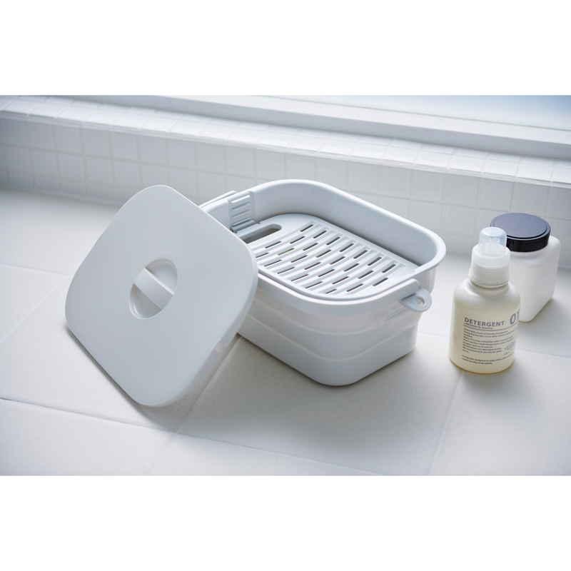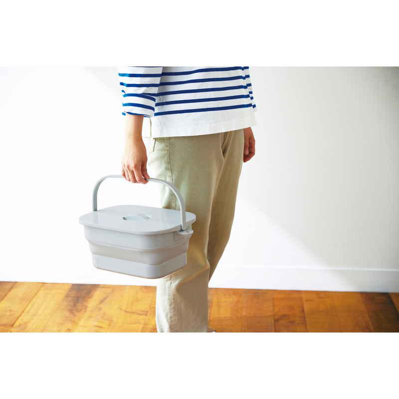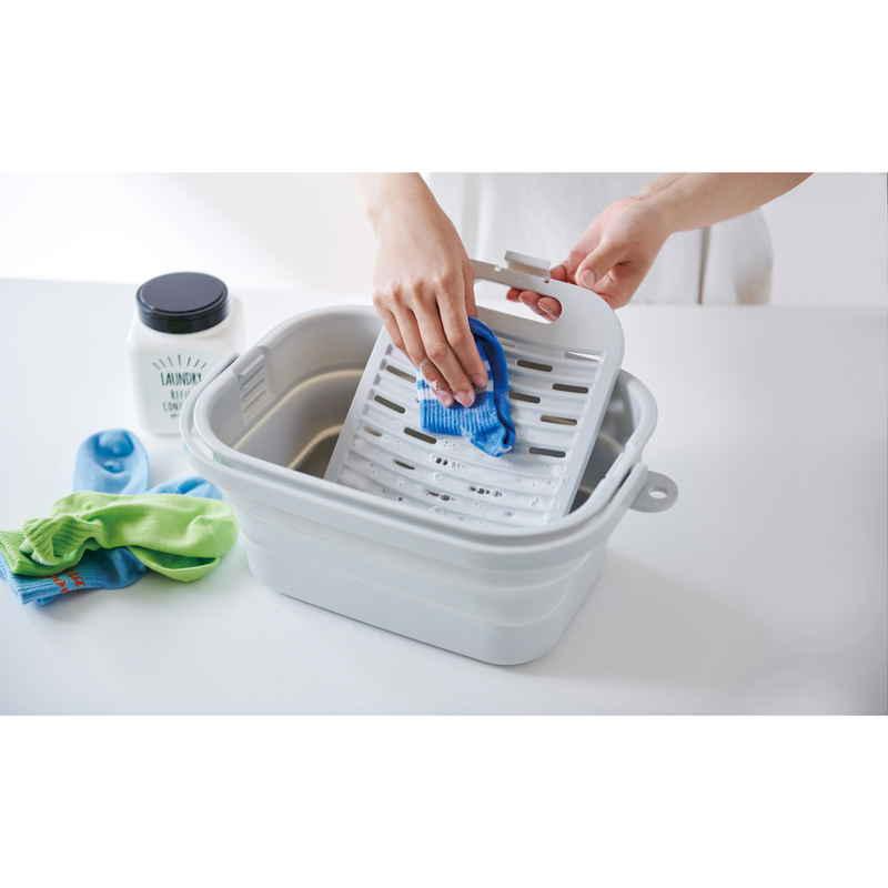 伊勢藤 【めざましテレビで紹介】バケツ 折りたためる つけ置き洗いバケツ 7L 洗濯板 蓋つき 角型 グレー