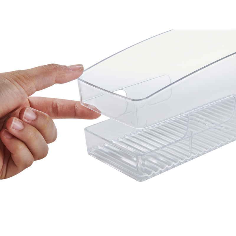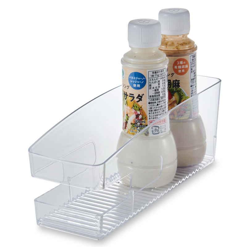 片手でも取り出しやすいデザインの冷蔵庫整理トレーです。