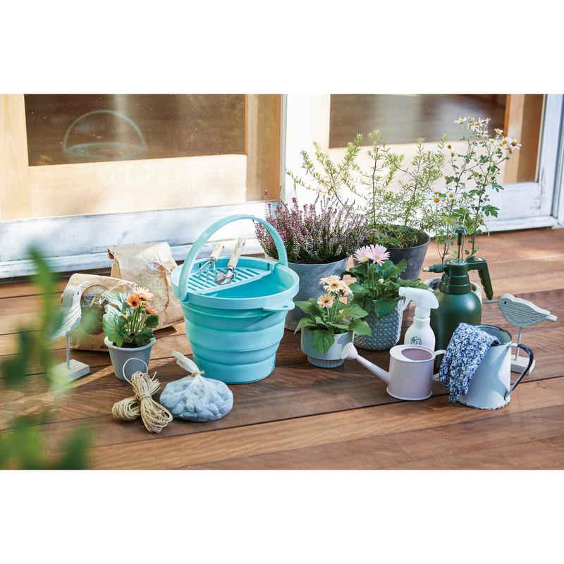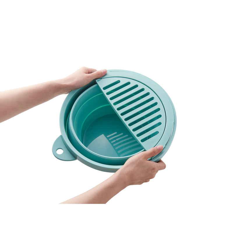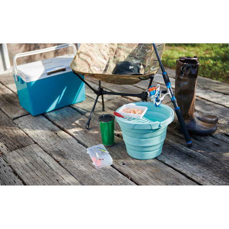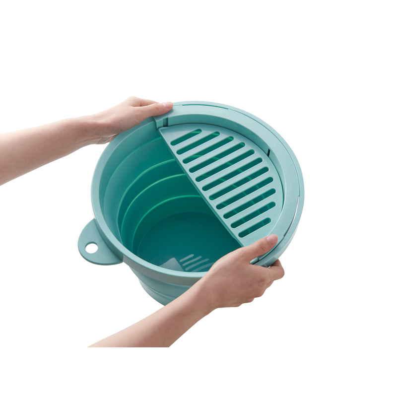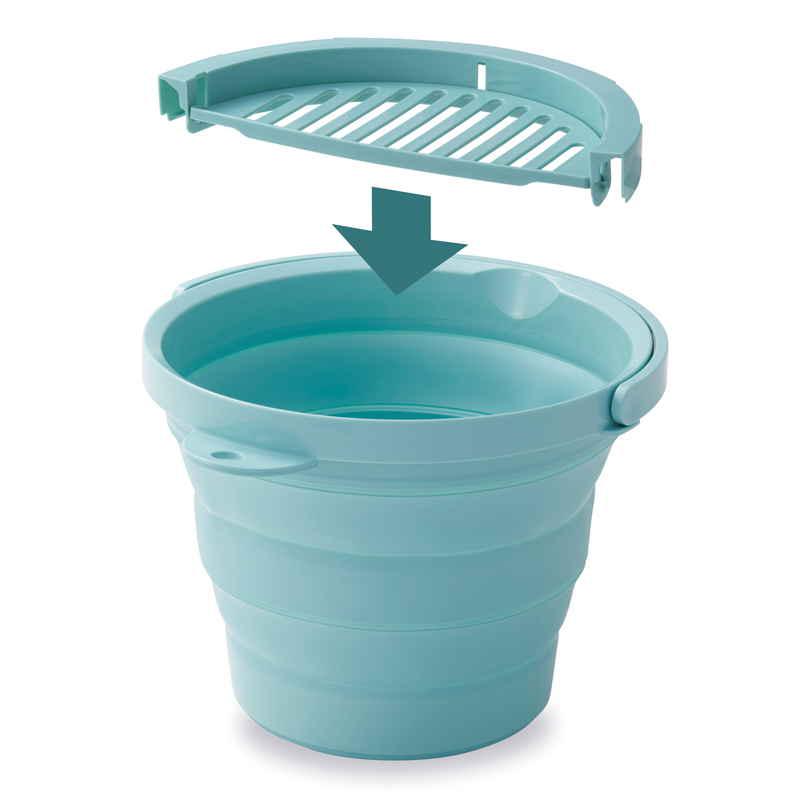 伊勢藤 バケツ 折りたたみ 8L ちょい置きトレー付 ソフトバケツ ミントグリーン