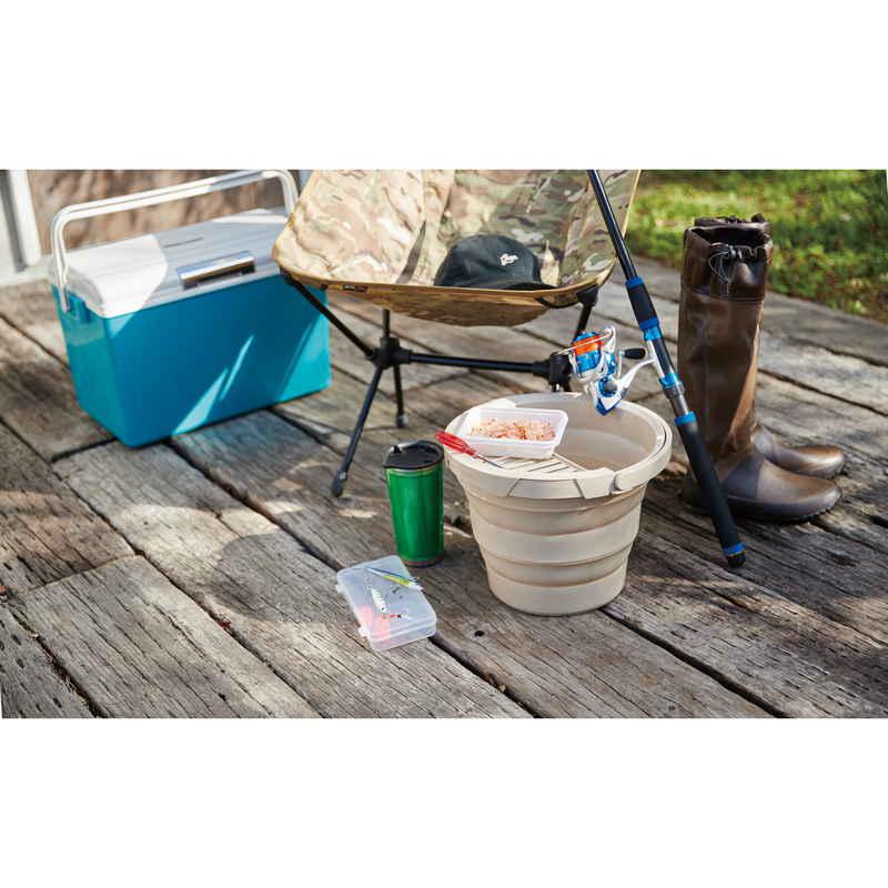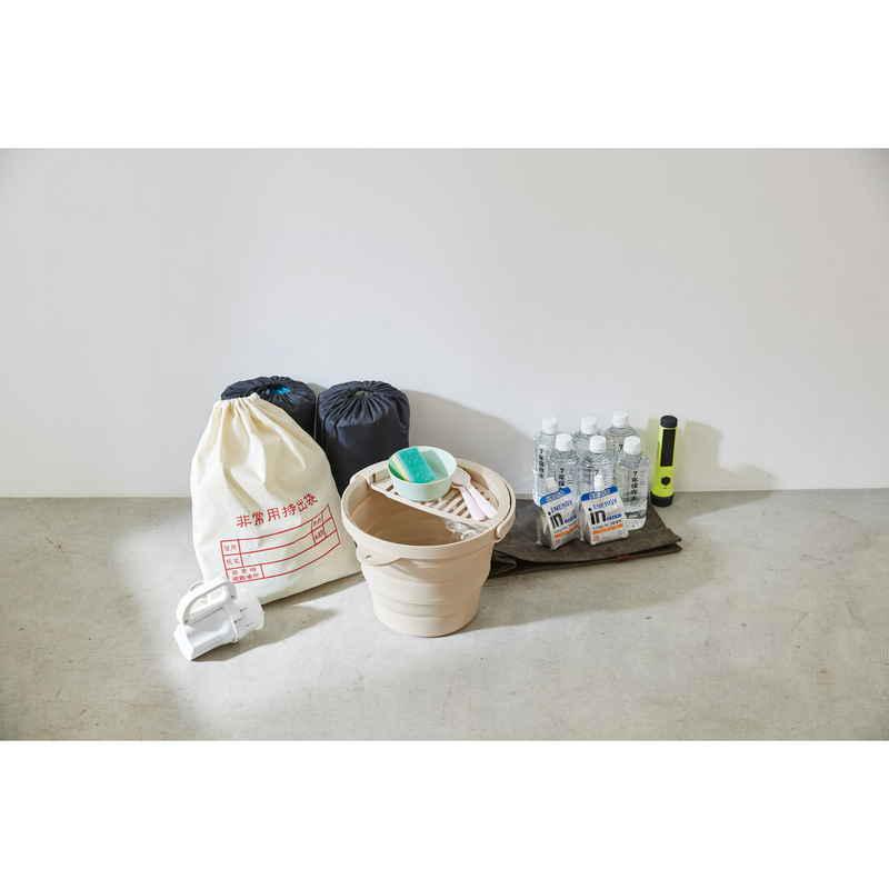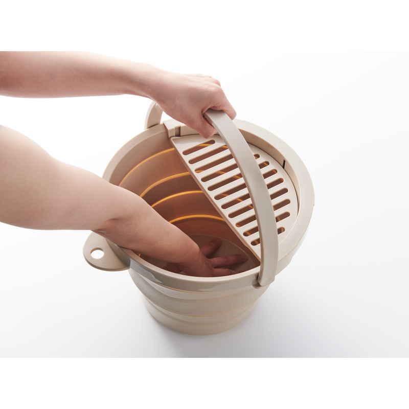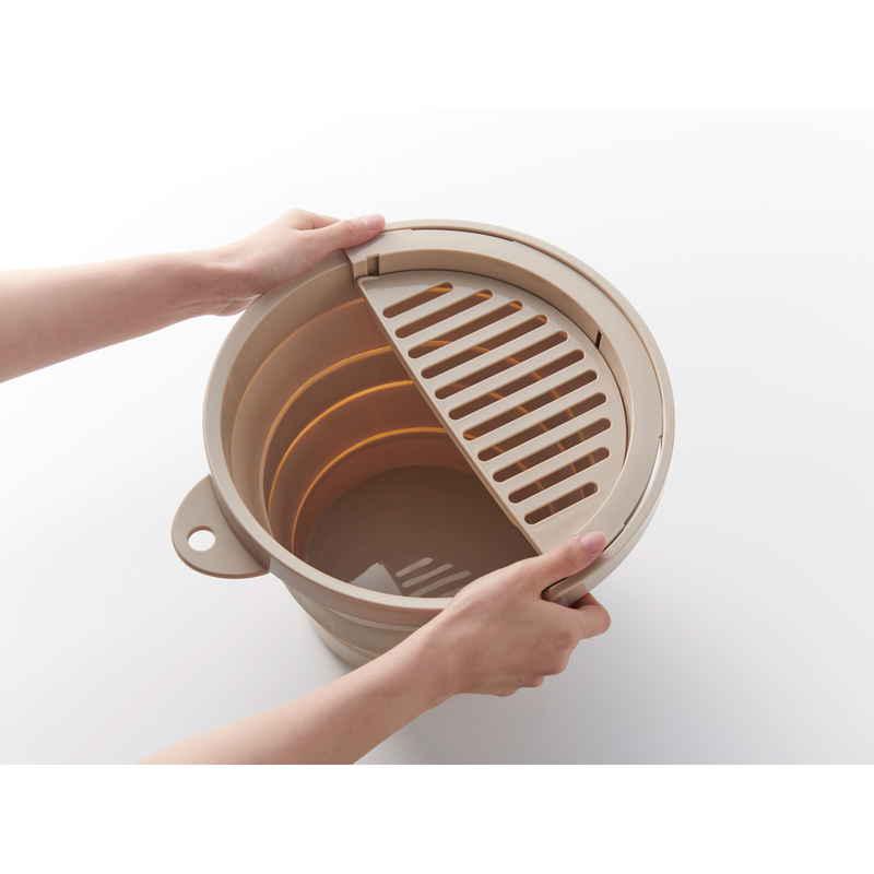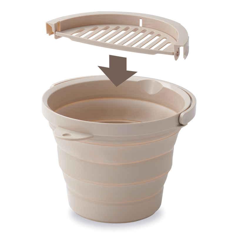 伊勢藤 バケツ 折りたたみ 8L ちょい置きトレー付 ソフトバケツ ベージュ