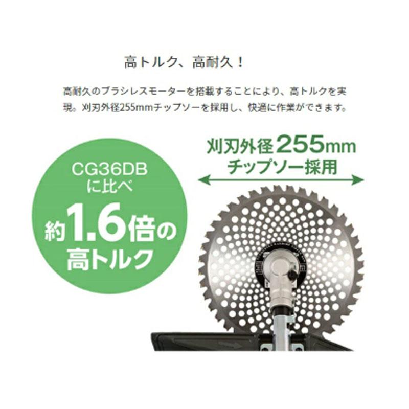 ・高耐久ブラシレスモーター搭載で(従来機CG36DB比、約1.6倍)の高トルクでザクザク草刈りが出来ます。