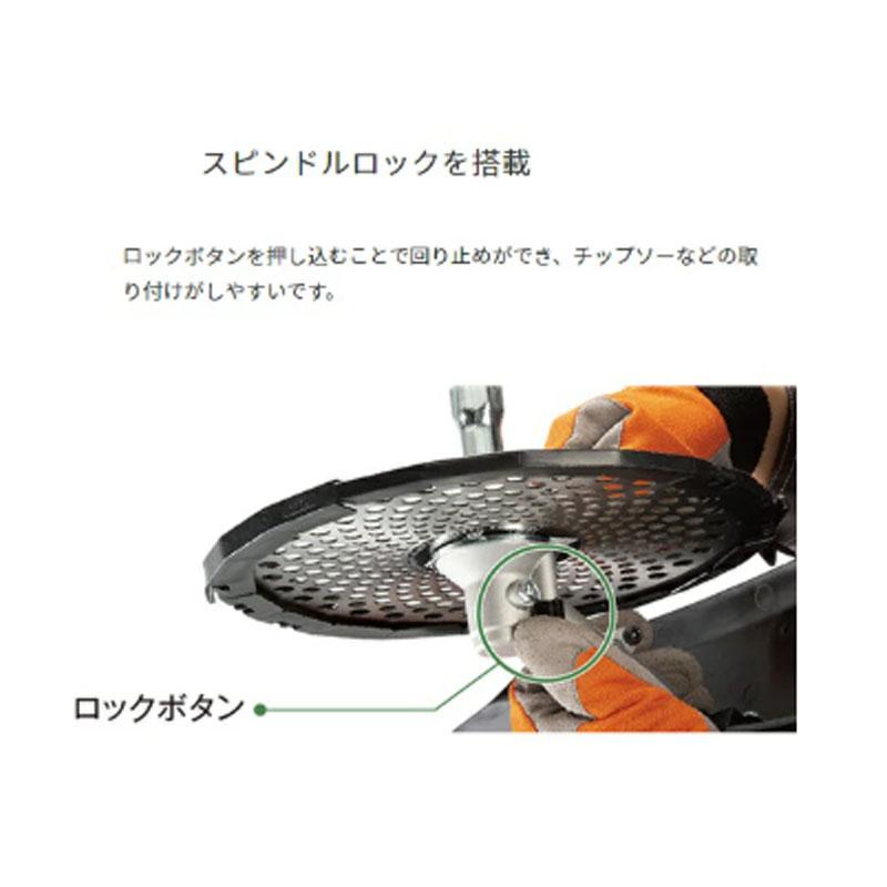・ロックボタンを押し込むだけでスピンドルをロック可能でチップソーの取り付けが楽です。