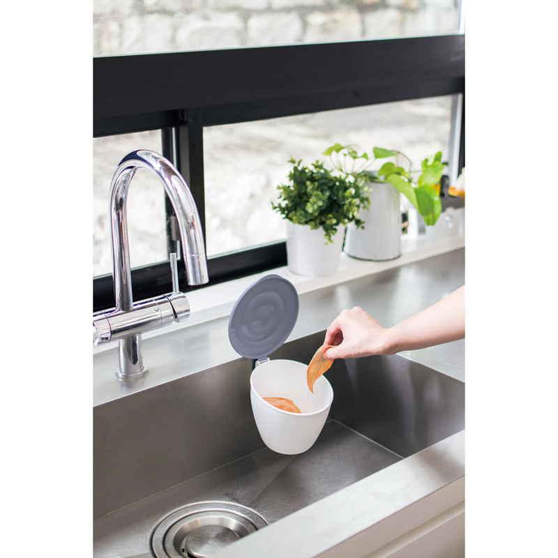 フタ付きでゴミや生ごみの匂いや見た目に配慮し、シンク上もスッキリします。