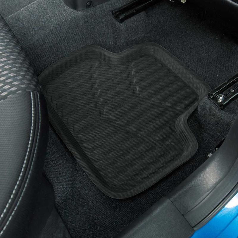 雨・雪・泥の汚れから車内を守るTPE素材のマット。