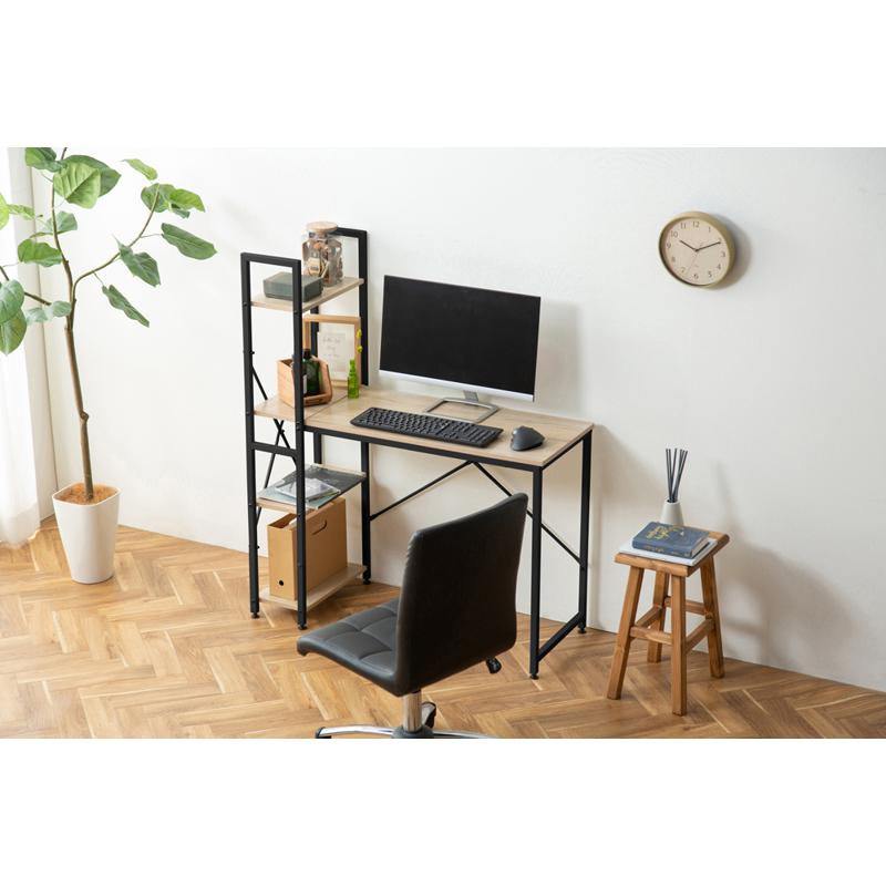 4段階のラックにファイルや小物、Wi-Fiルーターなどを収納でき、デスクを有効に活用できます。