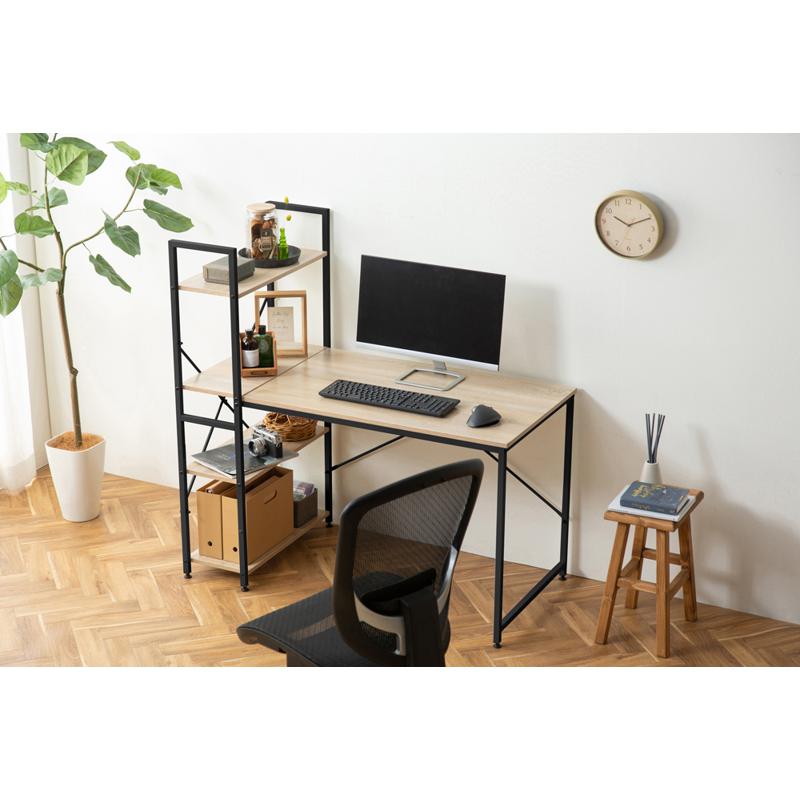 4段階のラックにファイルや小物、Wi-Fiルーターなどを収納でき、デスクを有効に活用できます。