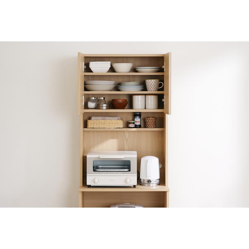 【本体上部】扉内は高さを調節できる可動棚になっているので、収納物に合わせて調整できます。2口コンセント付き。