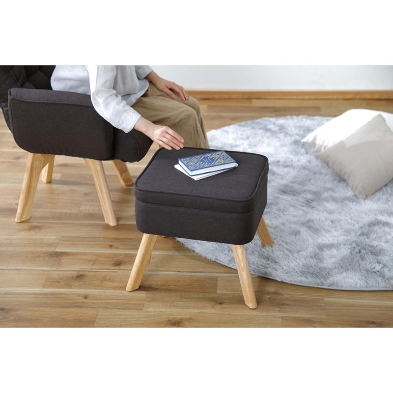 ◯脚部に天然木を使用した収納付きのオットマンです。