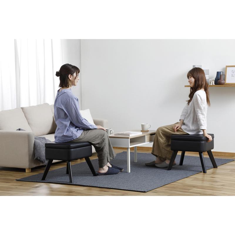 ◯脚部に天然木を使用した収納付きのオットマンです。