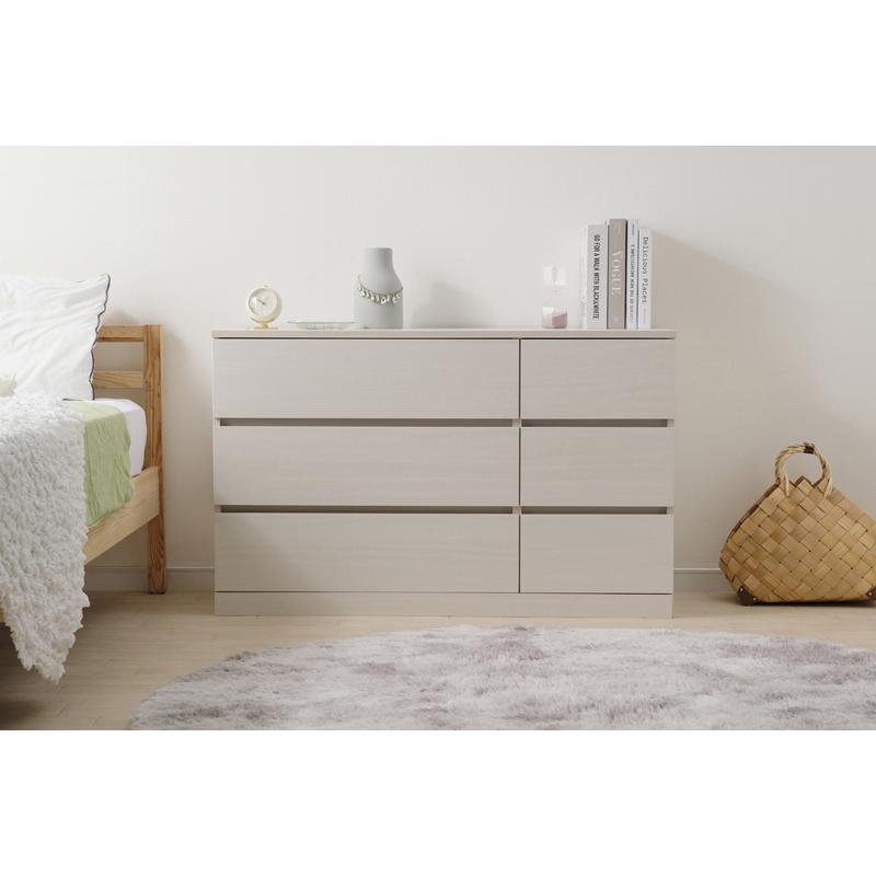 小引き出しが3段と大引き出しが3段のロータイプです。