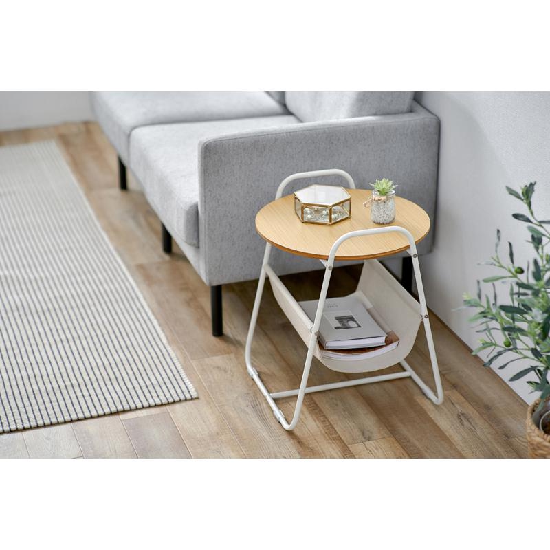 丸い天板と布棚はお部屋をかわいらしく演出します。