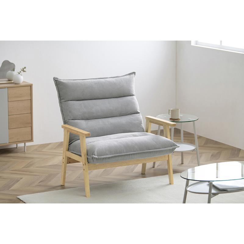 グレーのファブリック生地と天然木を組み合わせたことで、インテリアに馴染みあたたかな雰囲気を演出します。