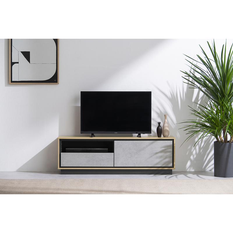 ●スタイリッシュな質感のモルタル調とあたたかみのある木目調を組み合わせた、モダンデザインのモルタル調家具シリーズ