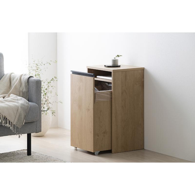 天板下にはごみ袋や清掃用品などの小物が収納できる棚板付きです。