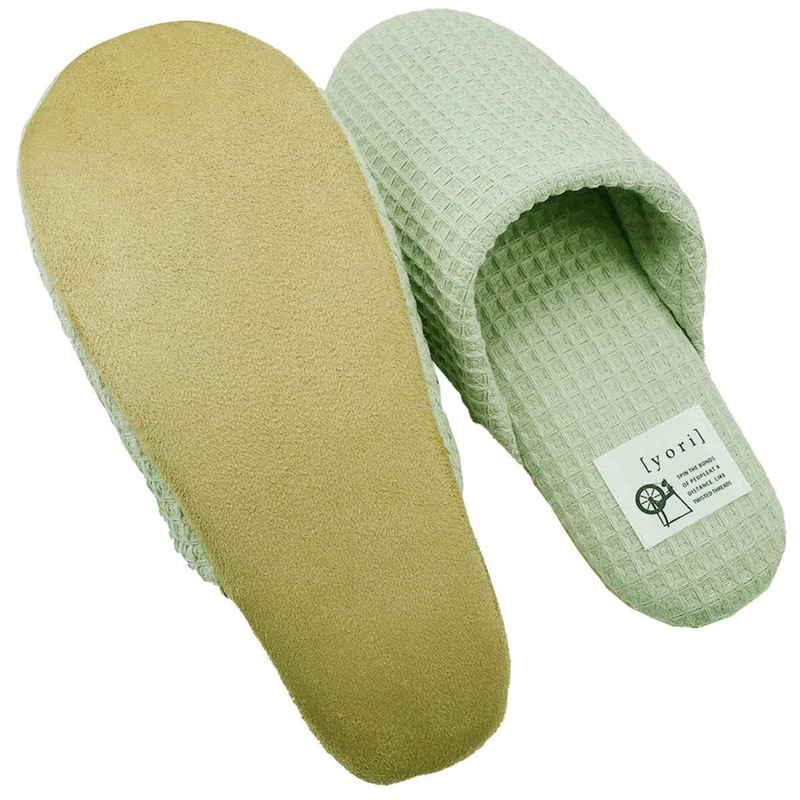 オクムラ スリッパ yori コットンワッフル ソフト 綿100% M グリーン