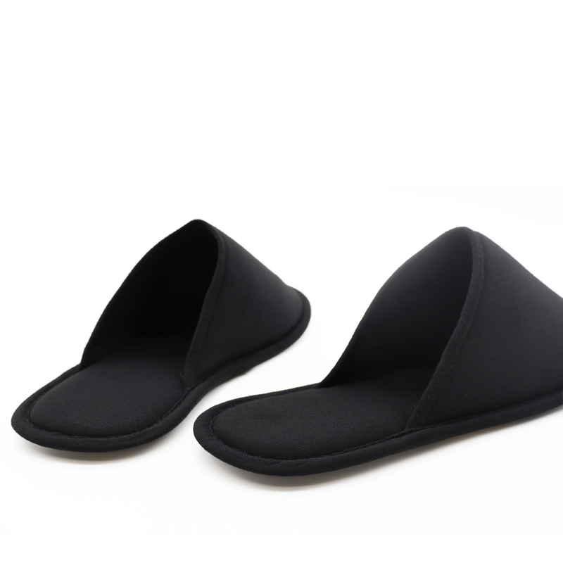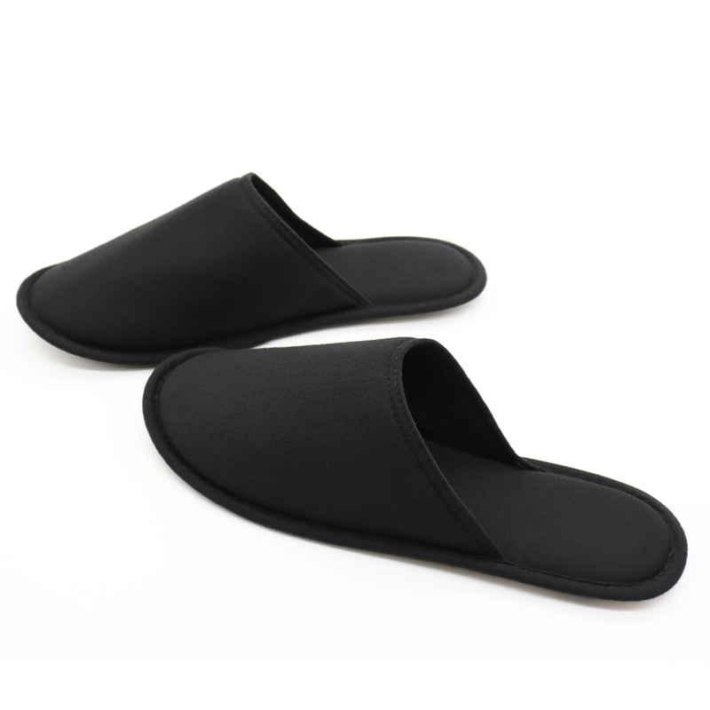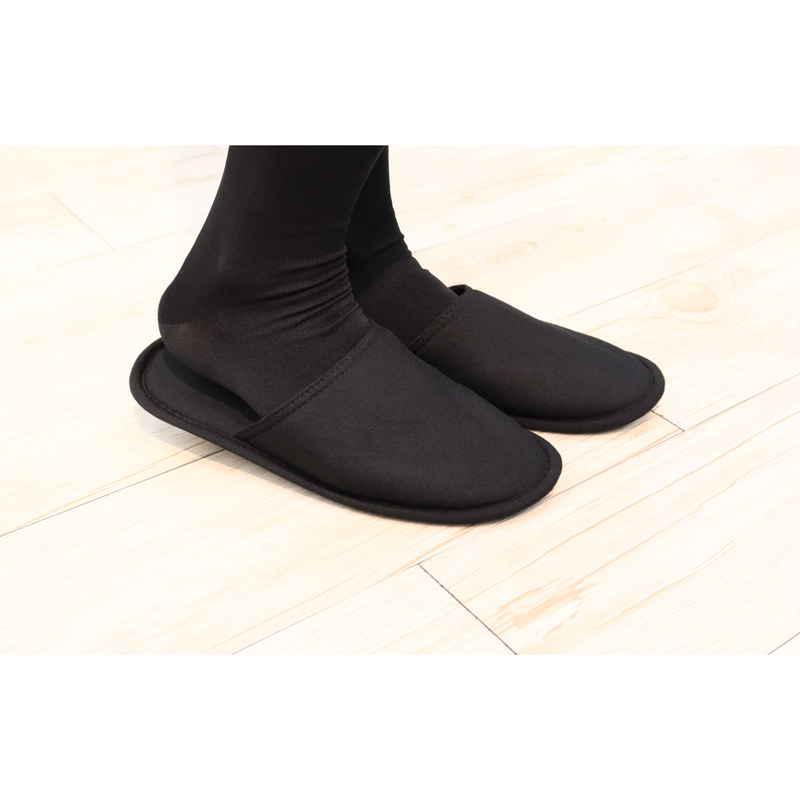 オクムラ 洗えるスリッパ 22.5cm〜24.5cm 薄型携帯 天竺ニット M ブラック