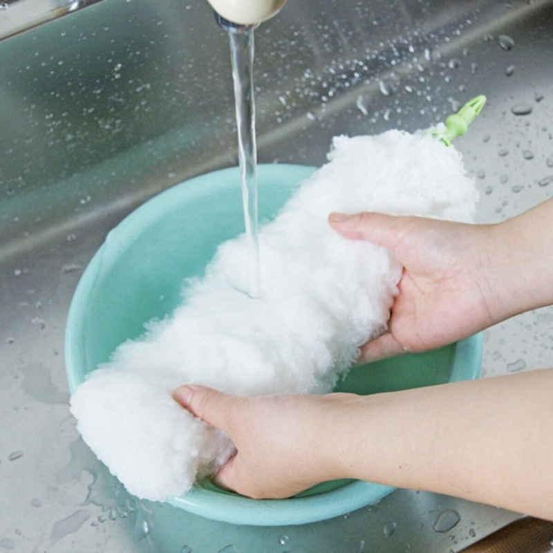 通常のハタキと違い、ホコリを払うだけでなく汚れをかき取るマイクロファイバーを使用したハタキです。