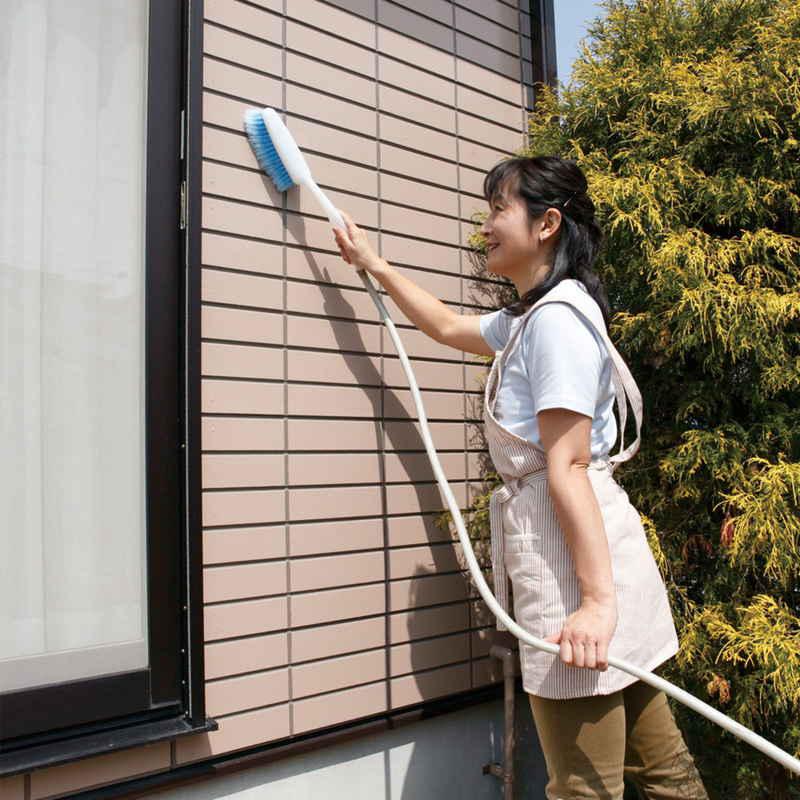 ホースをつないで水洗いができるハンディタイプのブラシです。
