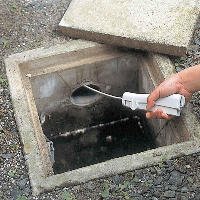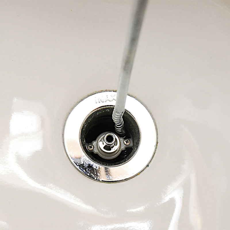 排水パイプを外す必要がなく、ワイヤーを差し込むだけで詰まりを解消します。