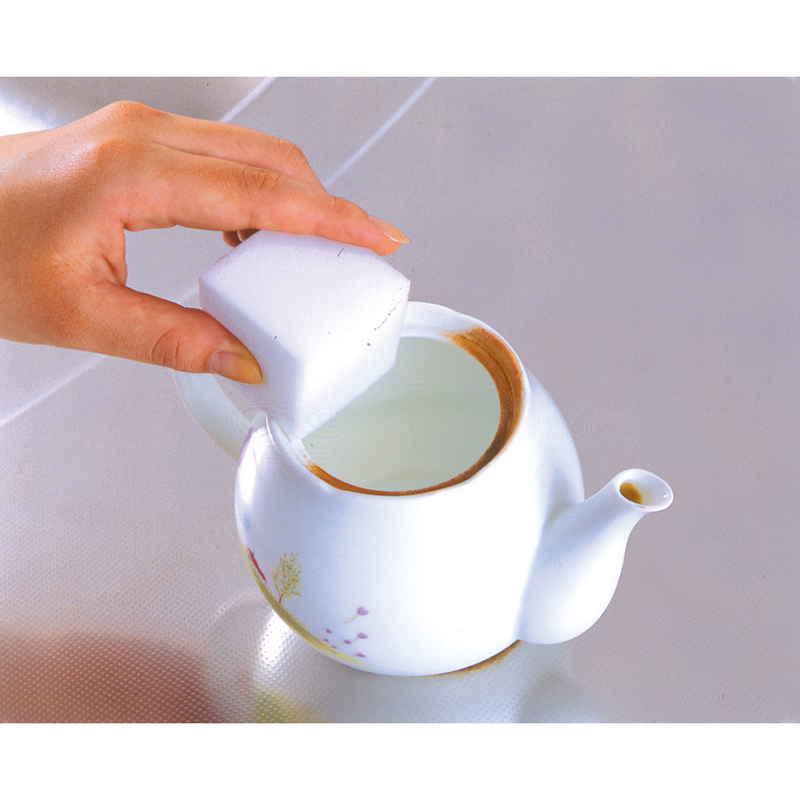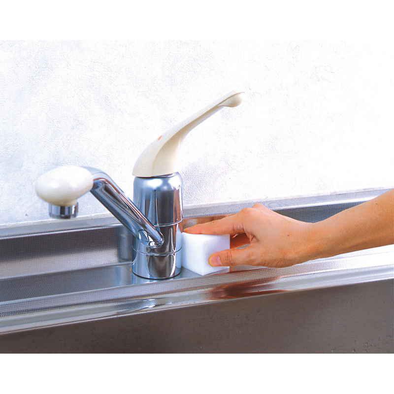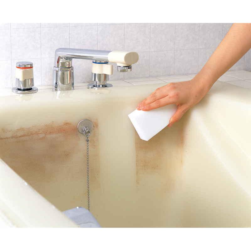 水を含ませてこするだけで水アカ、手アカなどが驚くほど落ちるメラミンスポンジです。