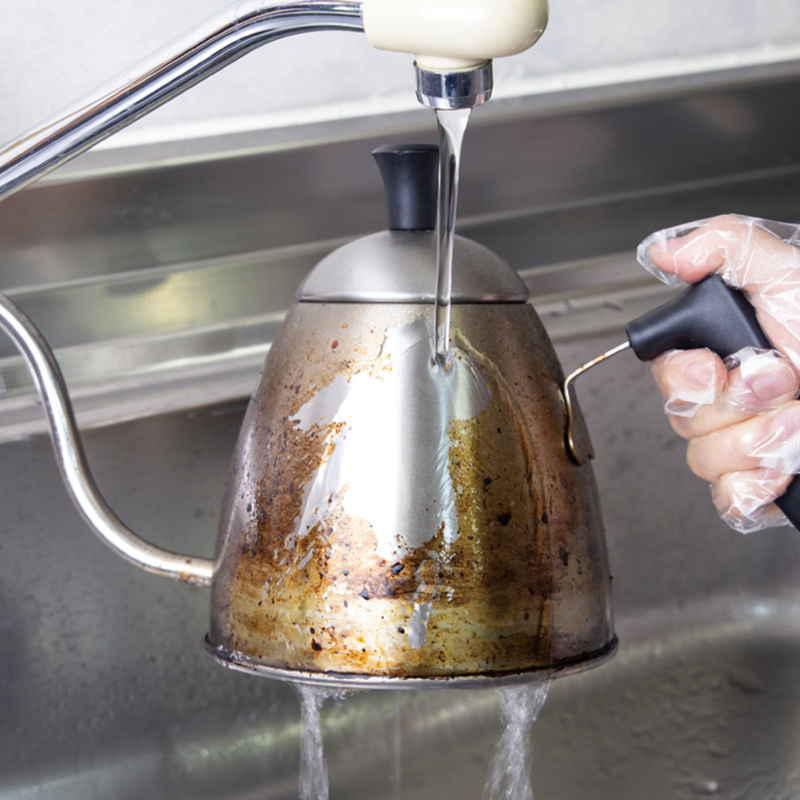 頑固なコゲの場合は2時間程度放置するとより効果的です。