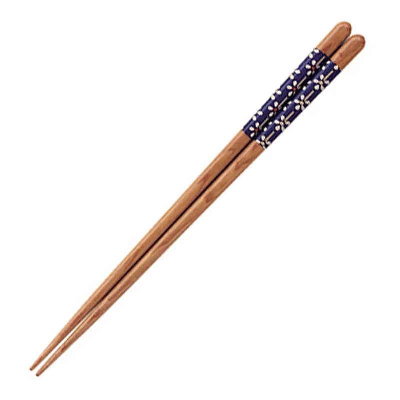 イシダ 箸 23cm 和柄 モダンフラワー ピンク 紺 木製 紺