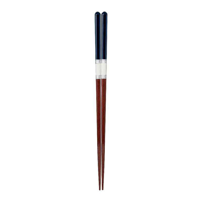 高級感あるデザインのお箸です。 天(箸の頭)部分を丸く加工した、天丸仕上げとなっております。 箸先はすべり止め付きなので、うどんなどの麺類も食べやすいです。 色違いのお箸と揃えると、夫婦箸になります。 食洗機に対応しているので、お手入れが楽チンです。
