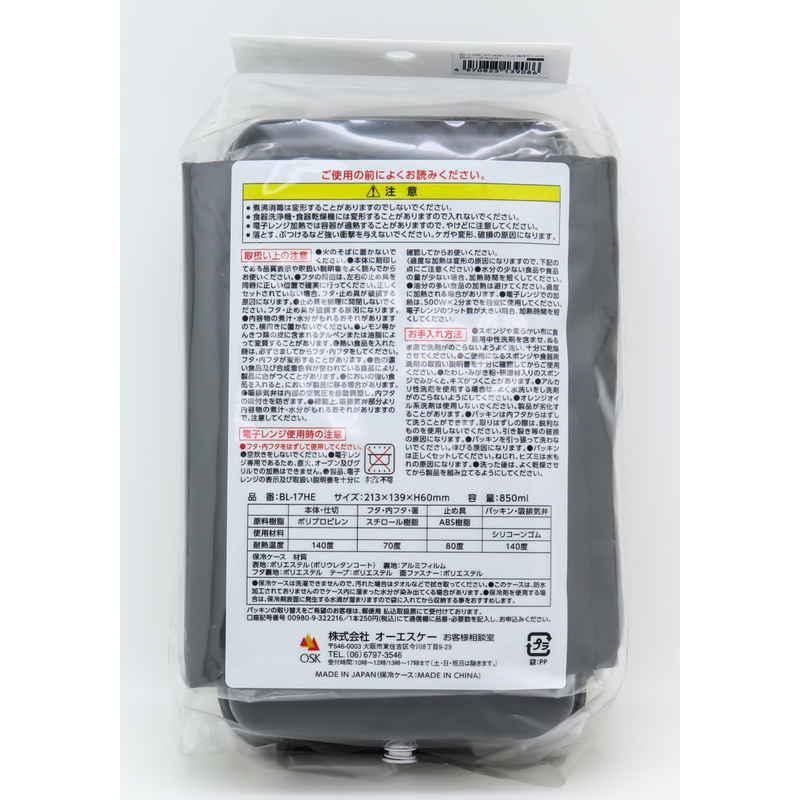 材質:【弁当箱】 本体、仕切り/ポリプロピレン 蓋、内蓋、箸/スチロール樹脂 止め具/ABS樹脂 パッキン、吸排気弁/シリコーンゴム 【保存ケース】 表地/ポリエステル(ポリウレタンコート) 裏地/アルミフィルム 蓋裏地/ポリエステル テープ/ポリエステル 面ファスナー/ポリエステル