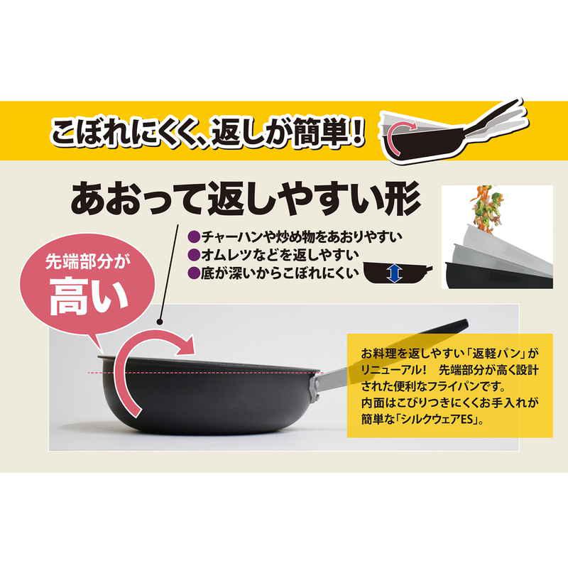 耐久性、耐食性に優れたフッ素樹脂加工「シルクウェアES」が施されており、食材がこびりつきにくいです。