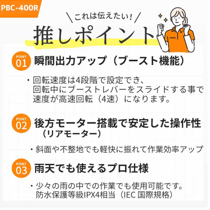 工進 充電式草刈機 40V リアモーター PBC-400R 草刈機 リチウムイオンバッテリー搭載 KOSHIN