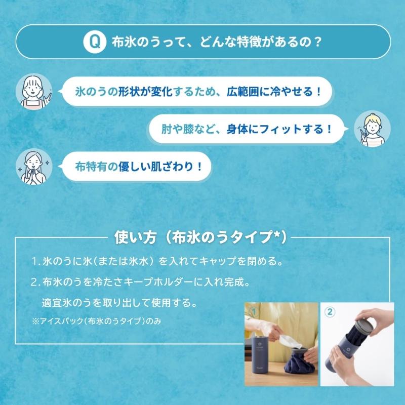 付属の「冷たさキープホルダー」に氷のうを収納することで、外気の熱を真空断熱構造が遮断。炎天下の屋外でも保冷効果が持続します。魔法瓶メーカーならではの技術が、氷のうの常識を変えます。