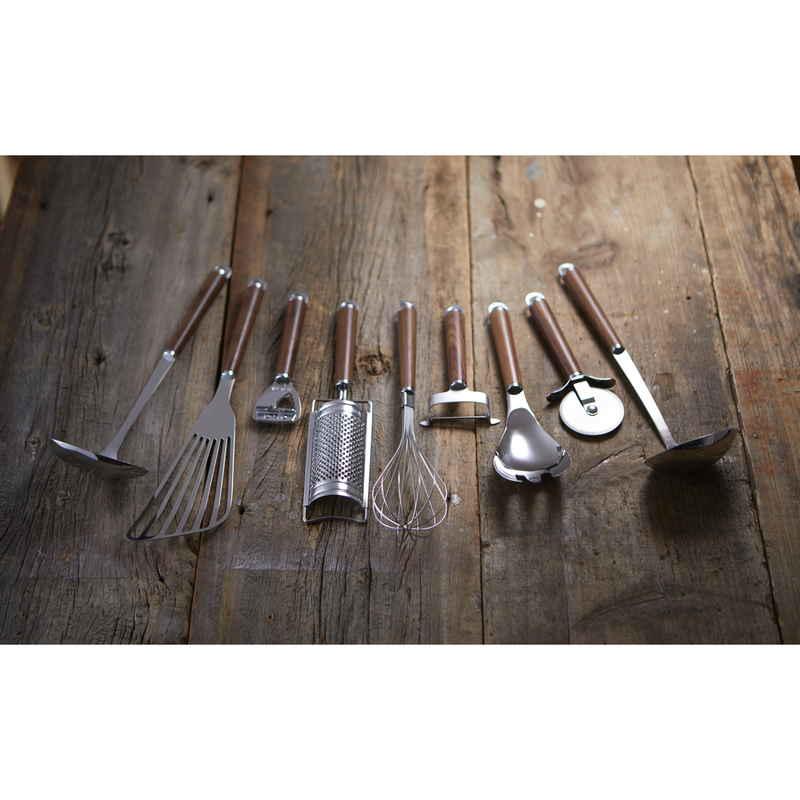 材質:金属部/18-8ステンレススチール 口金・フック・尻金/真鍮にクロームメッキ 柄部/天然木にウレタン塗装