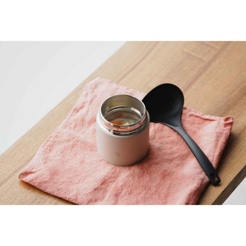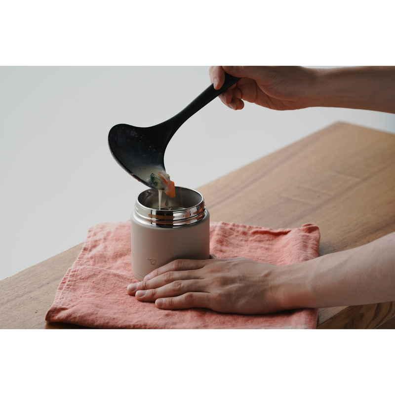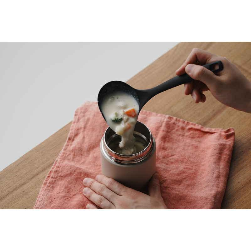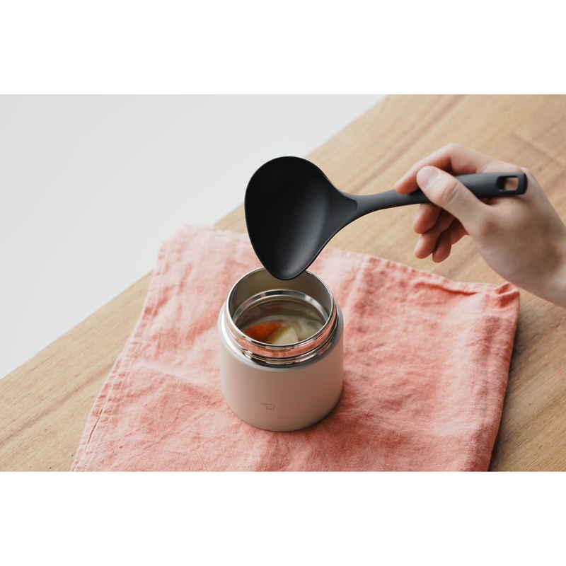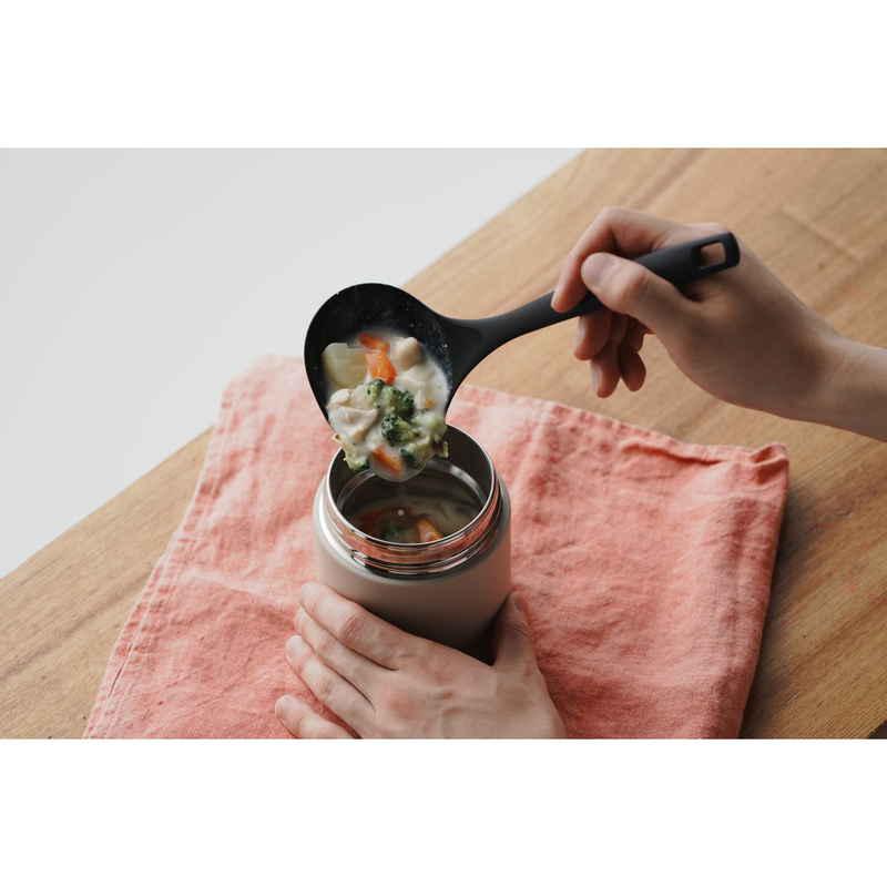 お弁当用に温かいスープを持ち運べるスープジャーにちょうどいいミニサイズの横口レードルです。