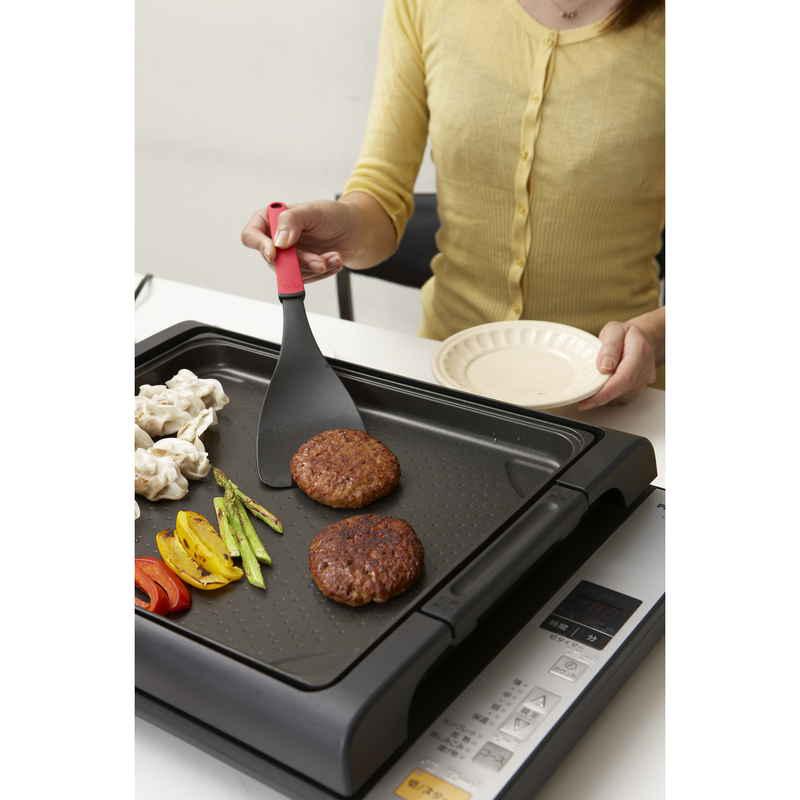 フライパンや鍋を傷つけにくいフッ素樹脂コーティングしたナイロン製のターナーです。