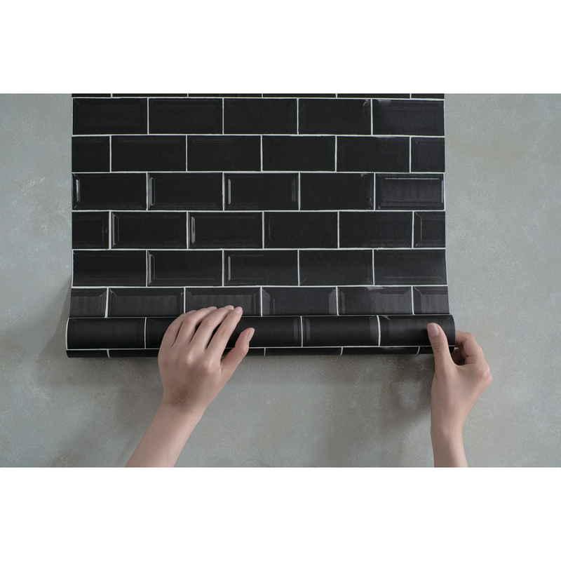 カモ井加工紙 リメイクシート 壁用 mt CASA fleece Bパターン 46cm×3m カビ防止剤配合 黒タイル