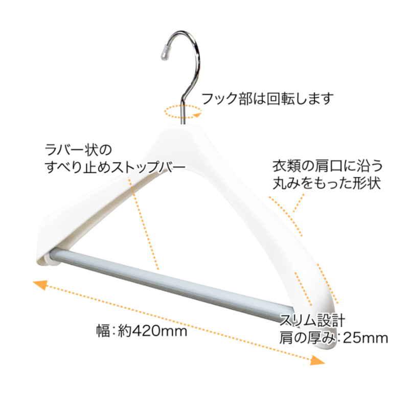 シンコハンガー ハンガー モノクローゼット 幅42cm スーツハンガースリムストップ 2本組 ホワイト