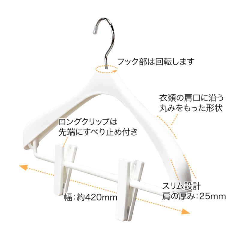 シンコハンガー ハンガー モノクローゼット 幅42cm スーツハンガースリムクリップ 2本組 ホワイト