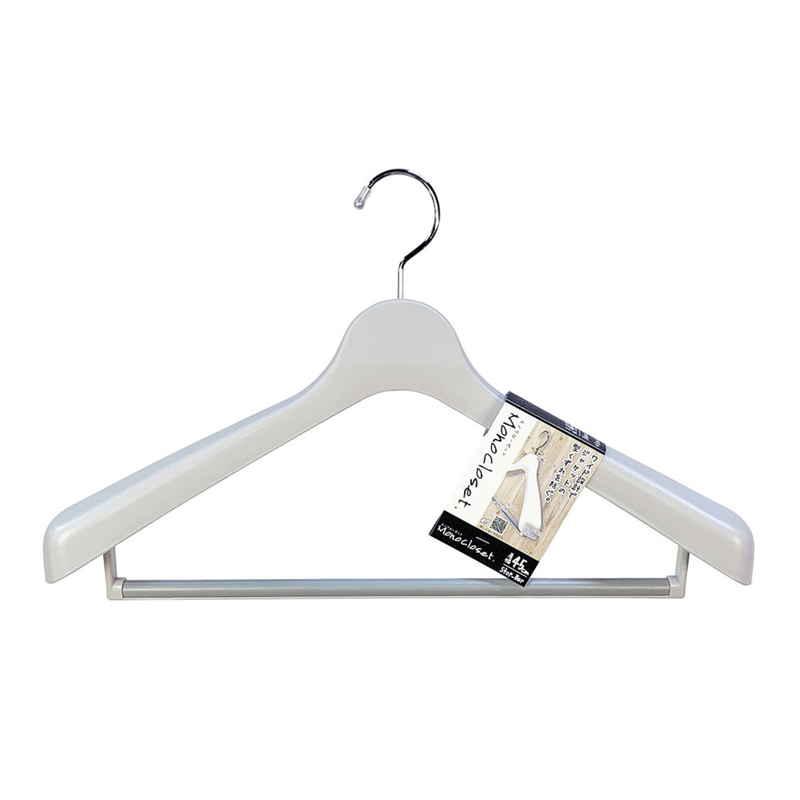 衣類が引き立つスーツハンガー 幅45cm ジャケットの型崩れを防ぐ シンプルが美しい「モノクローゼット」シリーズ ラバー仕様の滑り止めストップバー 衣類の肩に沿う形状
