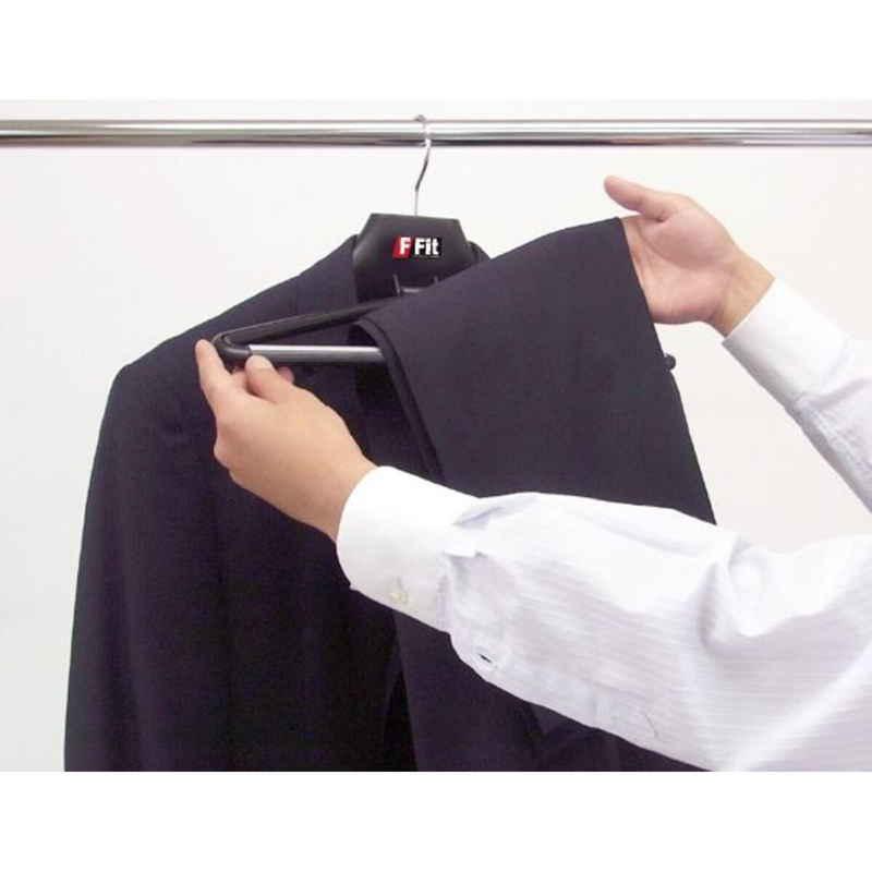 肩の丸みに沿った形状とハンガーの厚みがスーツの痛みを緩和し、型崩れを防ぎます。
