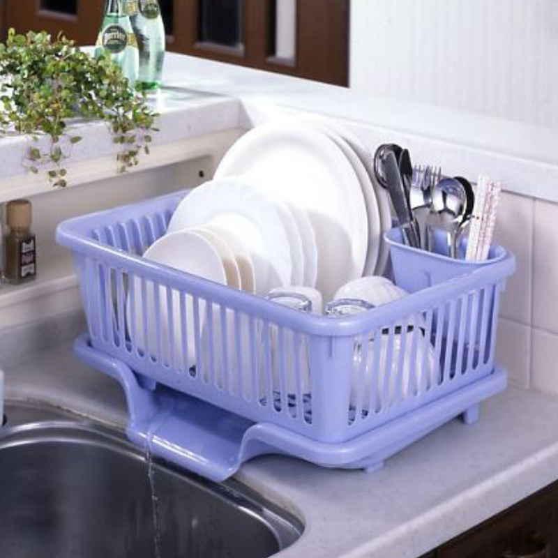 サンコープラスチック 水切りかご 縦型 カトラリーポケット付き パールブルー