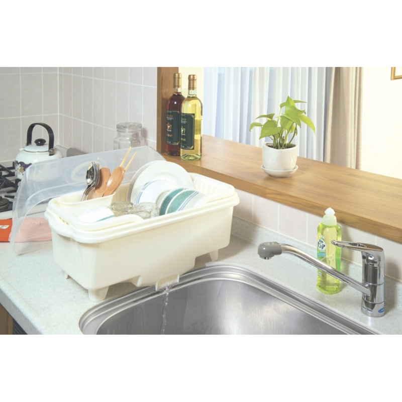 サンコープラスチック 水切りカゴ 皿立て 水切り 流 フード付 中サイズ パールホワイト