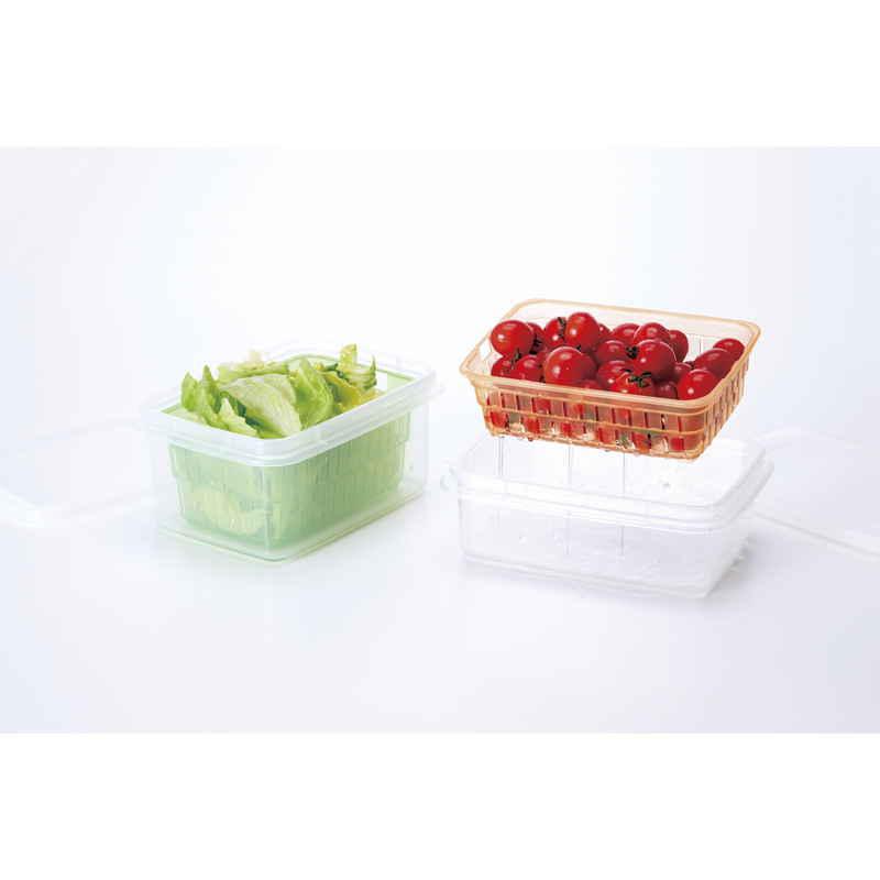 食材の水切りができるザル付きの保存容器です。