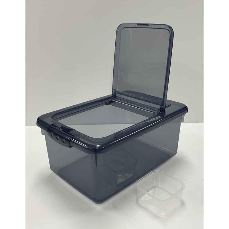 片手で簡単にワンタッチで開閉ができる米びつです。