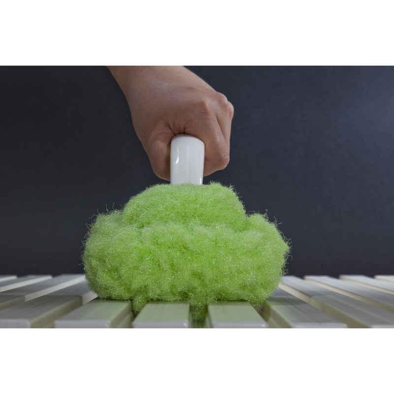 異形断面糸を使用した、水だけで湯アカなどの汚れを簡単に落とすことができるスポンジです。